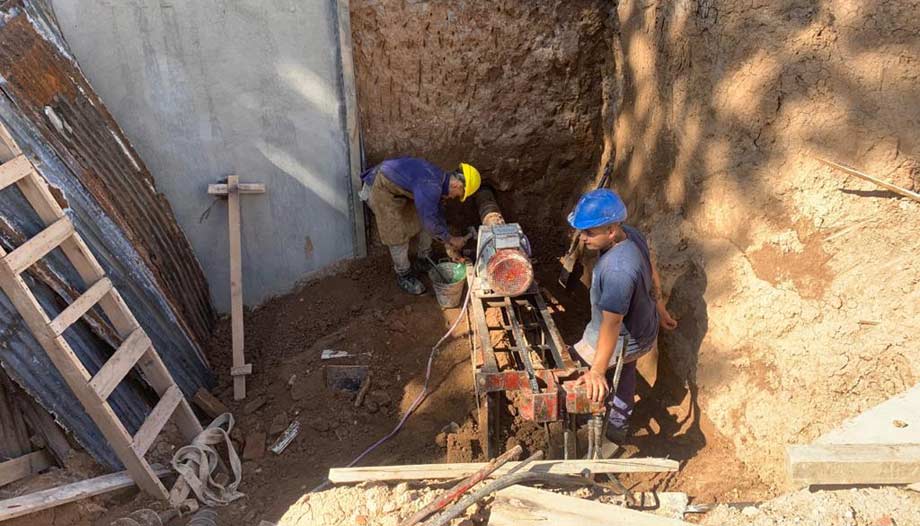 Anclajes hechos con hoyadora, motor eléctrico y avance hidráulico