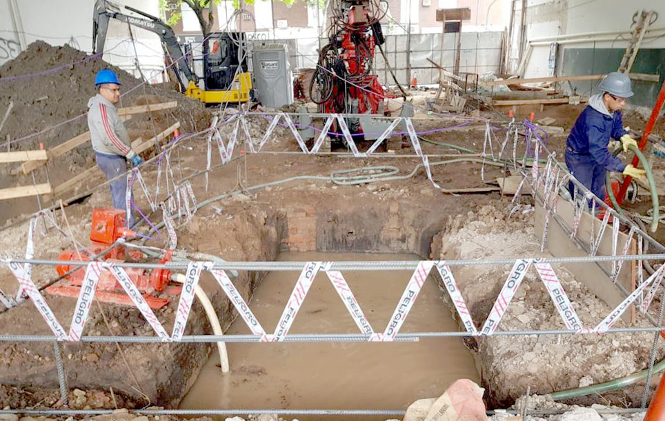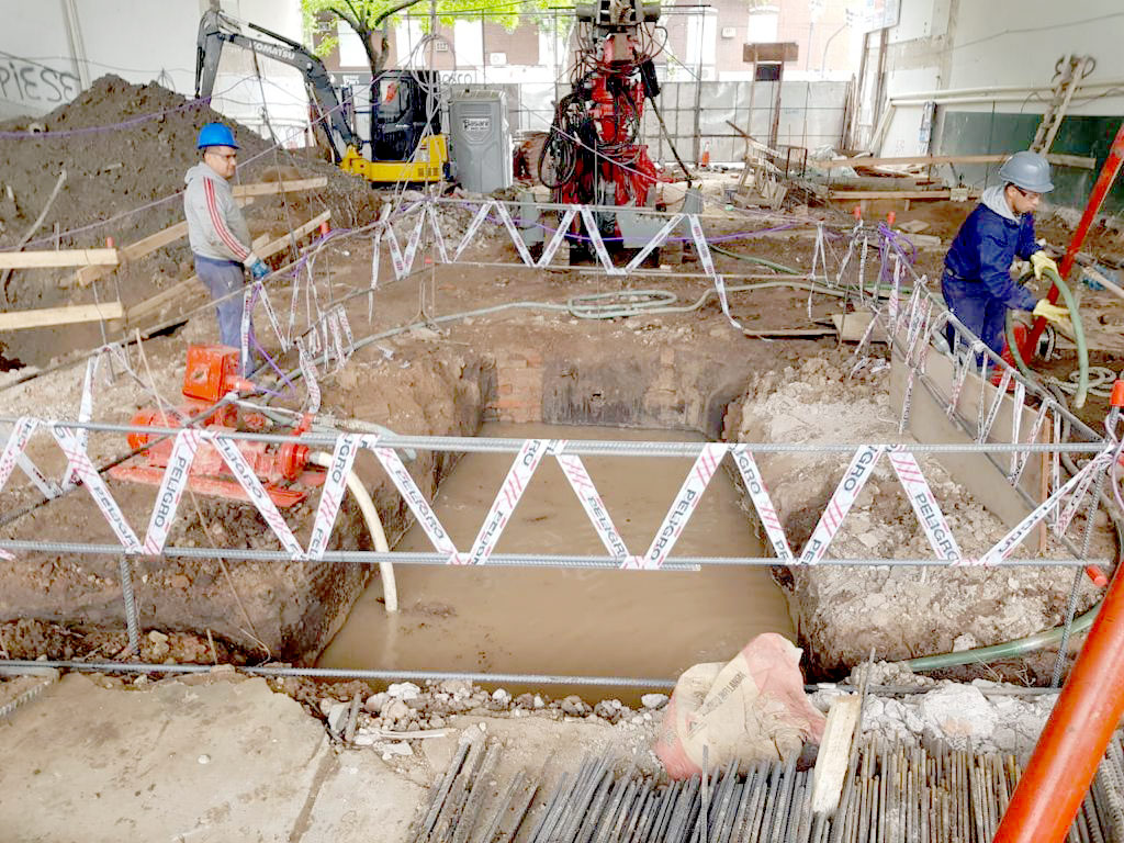 Realizamos Micropilotes desde 15 cms. hasta 22 cms de diametro y hasta 35 mts. de profundidad. Para ello utilizamos una máquina Klemm 806 y una Soilmec 305 entre otras Una de las obras en que realizamos Micropilotes